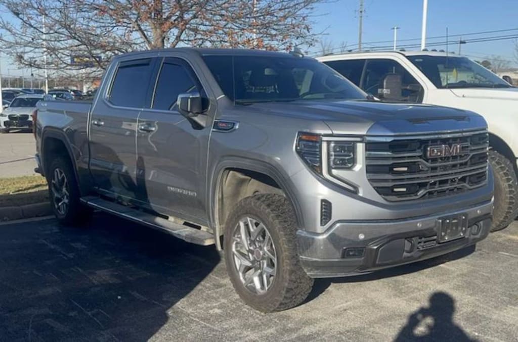 2023 GMC Sierra 1500 SLT Sterling Metallic Bluetooth, 10-Speed Automatic, 4WD, Dark Walnut/Slate Leather.